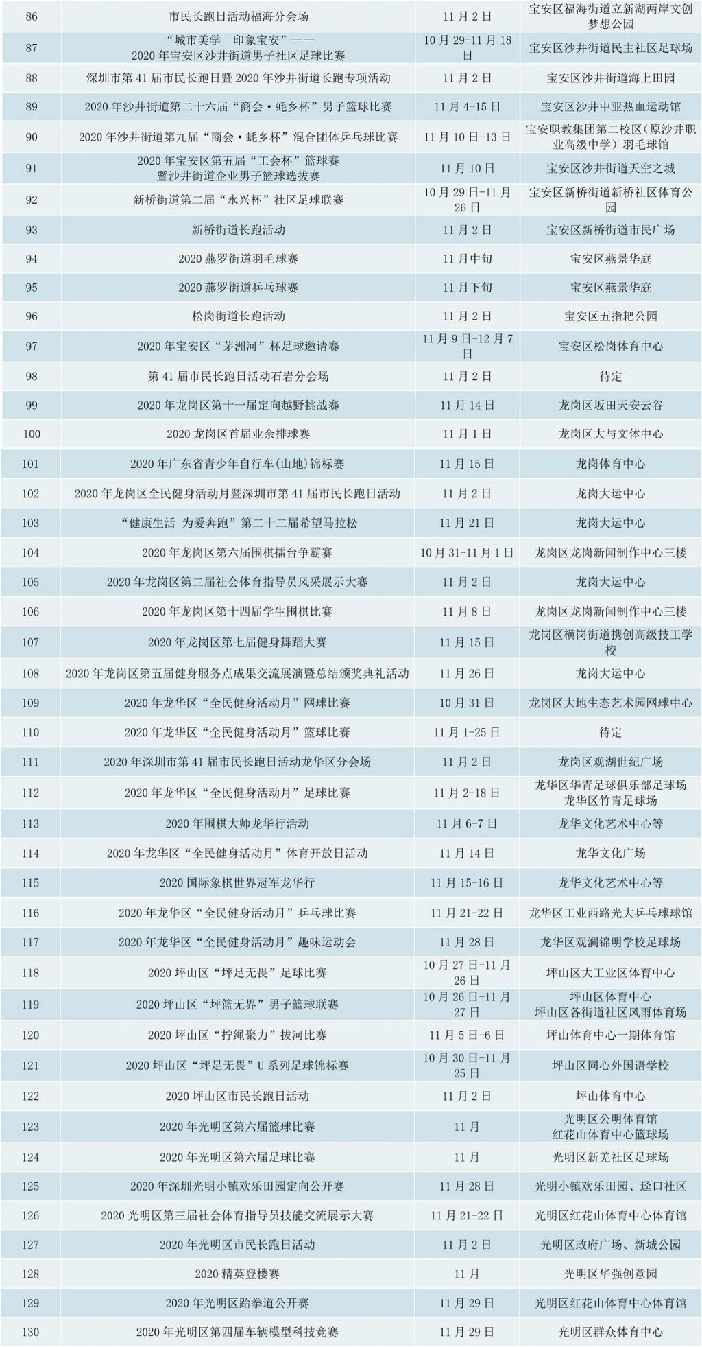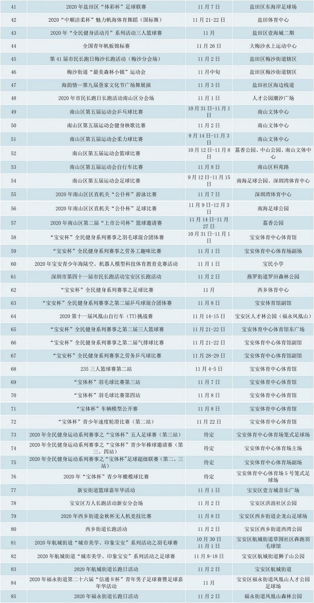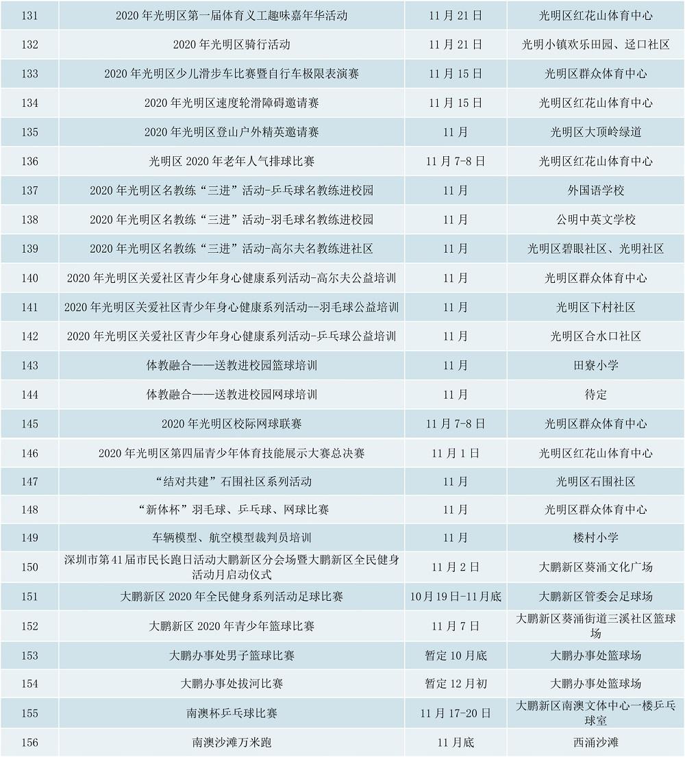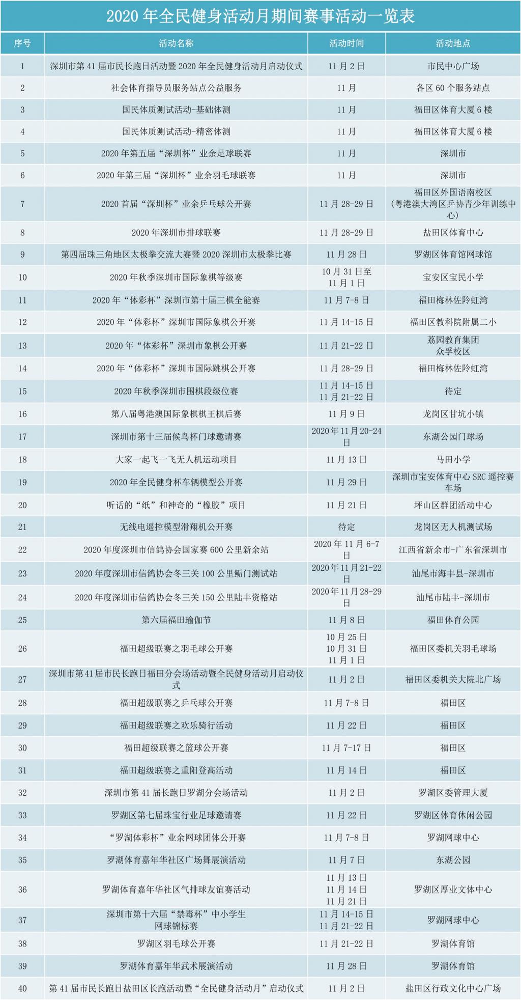 2020深圳全民健身活動月社會體育指導(dǎo)員服務(wù)點表: