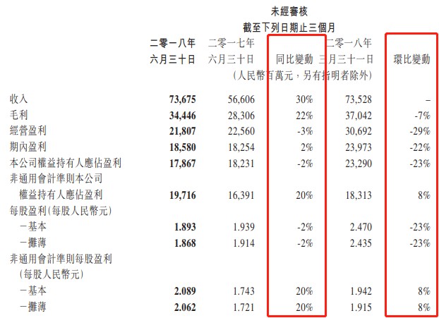 2018年8月15日,騰訊(00700)公布了第二季度及中期業(yè)績(jī),上半年收入1472.03億元,同比增長(zhǎng)39%,凈利潤(rùn)411.57億元,同比增長(zhǎng)26%。第二季度,收入736.75億元,同比增長(zhǎng)30%,凈利潤(rùn)178.67億元,同比下滑2%,環(huán)比來(lái)看,第二季度的各項(xiàng)業(yè)績(jī)指標(biāo)明顯弱于第一季度。