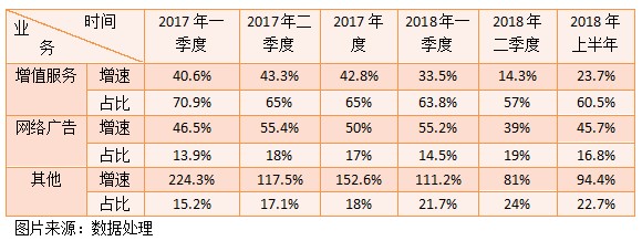 下面我們看該公司業(yè)務(wù)收入的變化,先看大類(lèi)分錄,有增值業(yè)務(wù)、網(wǎng)絡(luò)廣告和其他業(yè)務(wù)。