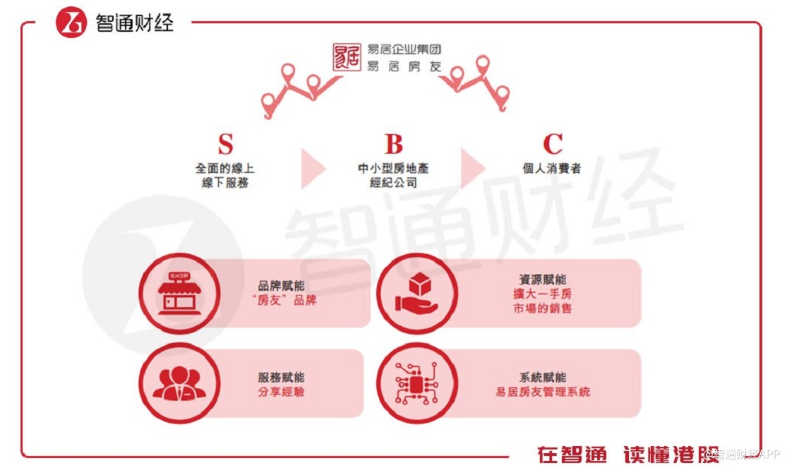 易居房友S2B2C的模式之新在于它不直接開展二手房經(jīng)紀業(yè)務(wù),也不開設(shè)二手房經(jīng)紀公司,而是賦能并整合房友品牌下的中小微房地產(chǎn)經(jīng)紀公司,向中小微房地產(chǎn)經(jīng)紀公司(B)提供在線線下綜合服務(wù)(S),以幫助其更好的服務(wù)個人客戶(C)。