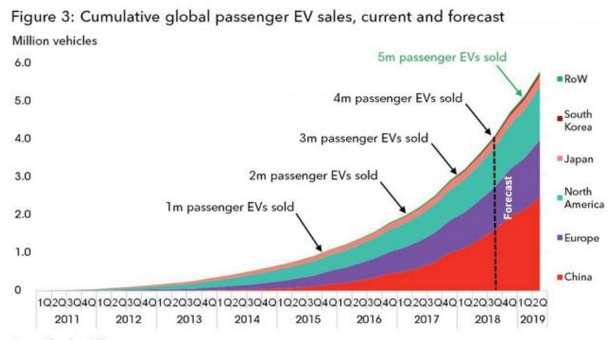 智通財(cái)經(jīng)APP獲悉,截至8月30日,全球電動(dòng)乘用車?yán)塾?jì)銷量約達(dá)400萬(wàn)輛。若將電動(dòng)巴士計(jì)入之中,全球電動(dòng)乘用車?yán)塾?jì)銷量則在7月初已突破400萬(wàn)大關(guān)??偟膩砜?,電動(dòng)車銷量從100萬(wàn)到200萬(wàn)花了17個(gè)月的時(shí)間,而從300萬(wàn)到400萬(wàn)僅花費(fèi)了6個(gè)月的時(shí)間。