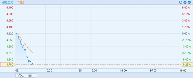 智通財(cái)經(jīng)APP獲悉,今日早盤A股鋼鐵板塊低開低走,現(xiàn)鋼鐵板塊跌超3%,馬鋼股份(600808)跌逾6%,受此影響,港股馬鞍山鋼鐵股份(00323)也跟隨下跌,截至10時(shí)02分,跌8.25%,報(bào)價(jià)3.78港元,成交額9244萬。