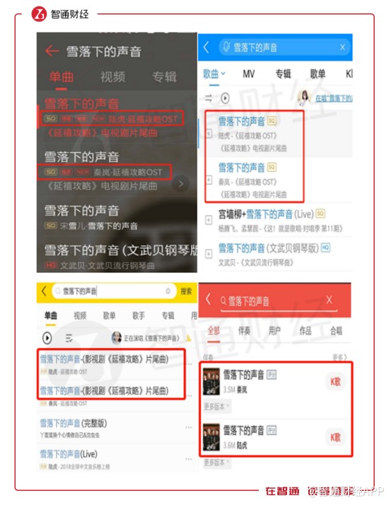 以此前熱播劇《延禧攻略》的片尾曲《雪落下的聲音》為例。這首歌的版權(quán)由QQ音樂獨(dú)家擁有,并在APP中擁有“獨(dú)家”的標(biāo)識(shí)。但實(shí)際上,該歌曲在酷狗音樂、酷我音樂和全民K歌上同樣可以播放,可以說(shuō)騰訊音樂版權(quán)在公司旗下4個(gè)產(chǎn)品是通用的。