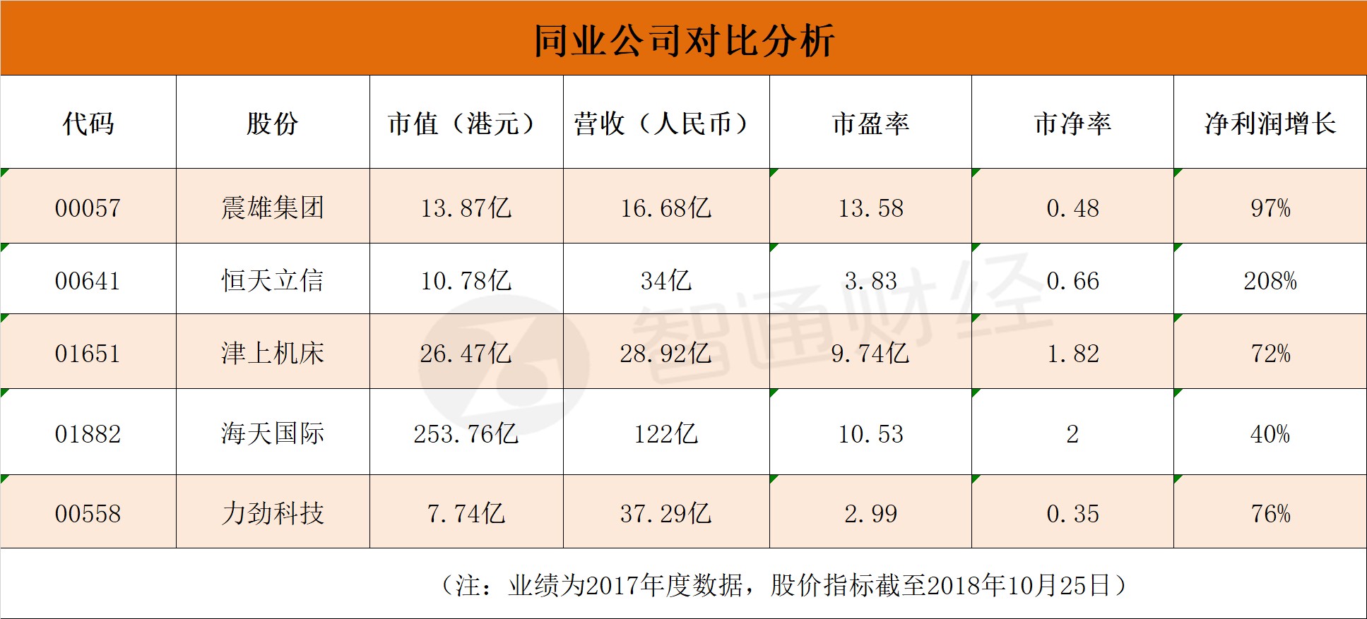 根據(jù)同業(yè)公司對(duì)比分析,力勁科技雖然不是注塑機(jī)行業(yè)龍頭,但是壓鑄機(jī)業(yè)務(wù)依然是行業(yè)龍頭,且估值為同業(yè)公司最低水平。