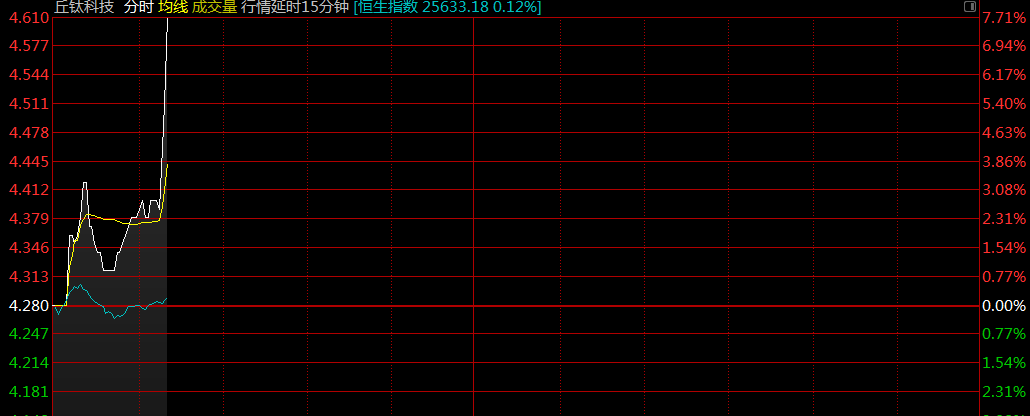 智通財(cái)經(jīng)APP獲悉,丘鈦科技(01478)今日大幅上漲,盤中漲幅超6%,截至10:22,漲7.71%,報(bào)4.61港元,成交額1069萬港元。
