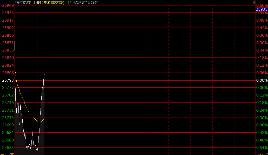 智通財(cái)經(jīng)APP獲悉,恒生指數(shù)開盤漲0.32%,報(bào)25874.36點(diǎn)。國企指數(shù)漲0.24%,報(bào)10503.81點(diǎn)。紅籌指數(shù)漲0.44%,報(bào)4250.64點(diǎn)。大市盤前成交17.33億港元。