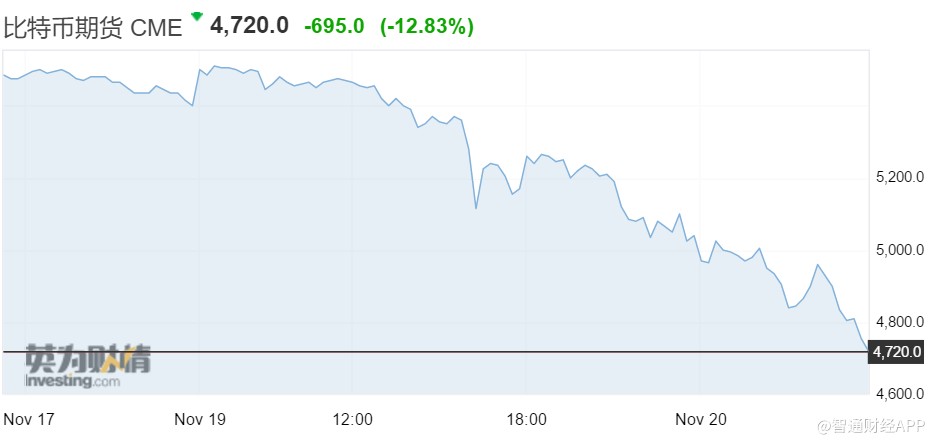 智通財經(jīng)APP獲悉,因悲觀情緒持續(xù)存在,比特幣在幣值跌破6000美元長達(dá)一周之后,昨日又暴跌12.83%,跌破5000美元關(guān)口,報4720美元。過去7天,比特幣跌超22%;今年以來累跌60%以上;與歷史高點相比累跌70%以上。