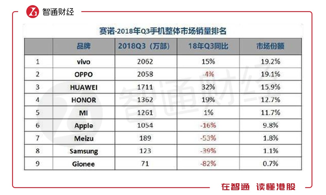 華為、小米、OPPO及Vivo四大品牌在全球逐漸吞沒其他知名品牌的市場份額,而在中國市場基本戰(zhàn)領了所有的市場份額,根據數據統計公司Counterpoint數據,2018年Q3,上述四大品牌市場占有率近80%。包括蘋果、摩托羅拉及三星等國外知名品牌,以及魅族、朵唯和中興等其他眾多國內品牌,爭奪剩下20%的市場份額,競爭以及生存環(huán)境十分殘酷。