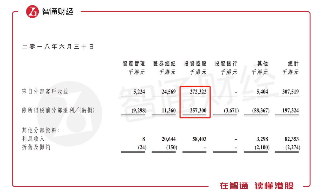 2018年上半年,中民金融實現(xiàn)股東應(yīng)占溢利約1.76億港元,同比增長53%,該利潤已相當(dāng)于2017年全年業(yè)績的92%。從2018年上半年分布業(yè)績來看,其稅前溢利主要來自投資控股部分,期內(nèi)投資控股分部的稅前溢利約為2.57億港元,2017年同期為約1.63億港元。