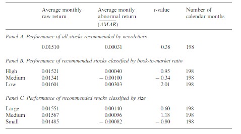 此外,美國學(xué)者Jaffe和Mahoney在1999年的一篇學(xué)術(shù)論文《The performance of investment newsletters》中,對1980-1996年間的近100份投資預(yù)測的系統(tǒng)性分析后得出結(jié)論,稱這些投資建議的回報還不及它們所對應(yīng)的比較基準(zhǔn)。也就是說,這些專家提供的薦股服務(wù)的價值為零。