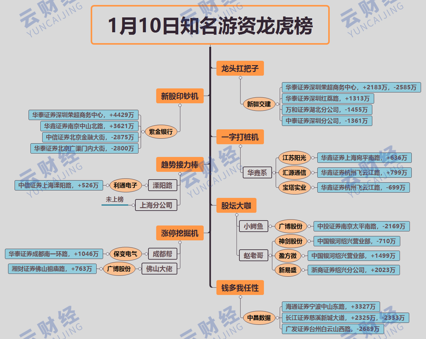 其他游資方面,趙老哥買入新易盛(300502)、盈方微(000670)各2023萬、1499萬,賣出神劍股份(002361)710萬,小鱷魚賣出廣博股份(002103)2169萬,成都幫買入保變電氣(600550)1046萬。