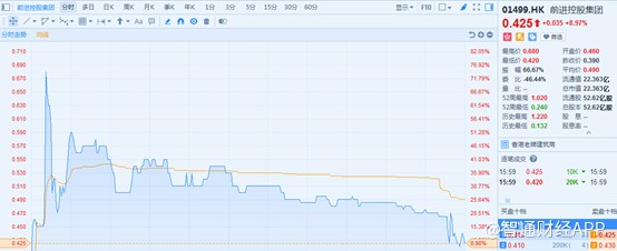 智通財(cái)經(jīng)APP獲悉,1月10日停牌的前進(jìn)控股集團(tuán)(01499)于24日復(fù)牌,股市反響劇烈,開(kāi)盤十分鐘曾一度暴漲74.56%,不過(guò)隨后不斷滑落,截止16時(shí)45分,報(bào)港元0.425元(下同),較停牌日收盤價(jià)0.39元僅有9%的增幅。