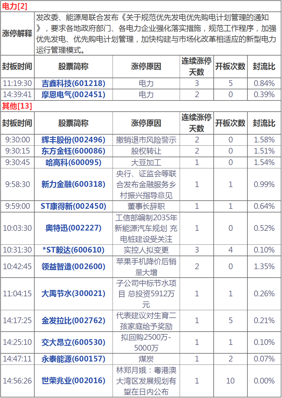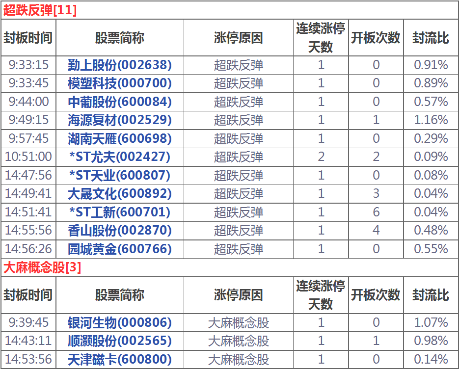 今天漲停家數(shù)較上一交易日有所減少,兩市75家漲停,跌停1家。成交量方面,滬市成交1567億元,深市成交2085億元,兩市總成交額約為3652元,較上一交易日放量453億元。盤面上板塊普漲,OLED、醫(yī)藥、天津自貿(mào)區(qū)、氟化工等板塊漲幅居前。