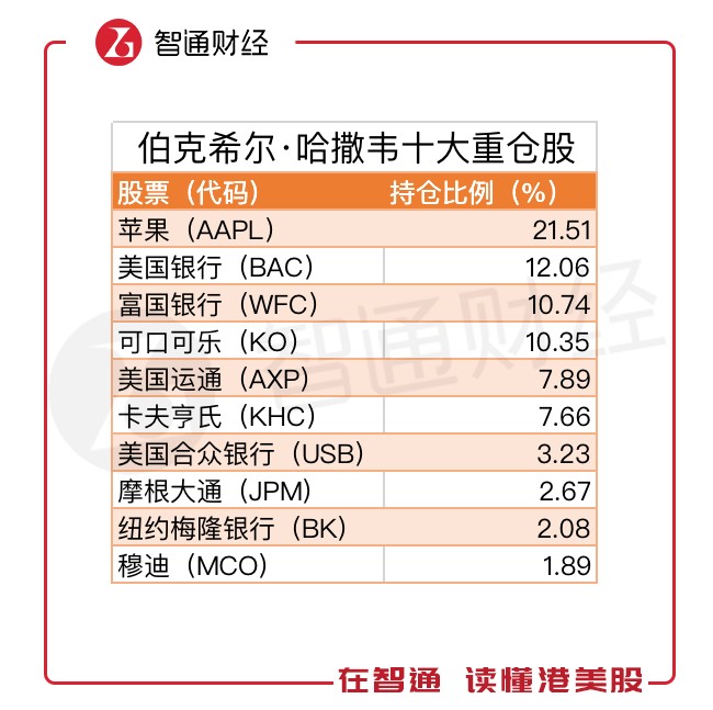 截至12月末,伯克希爾的十大重倉(cāng)股分別為蘋果、美國(guó)銀行、富國(guó)銀行、可口可樂、美國(guó)運(yùn)通、卡夫亨氏、美國(guó)合眾銀行、摩根大通、紐約梅隆銀行及穆迪。