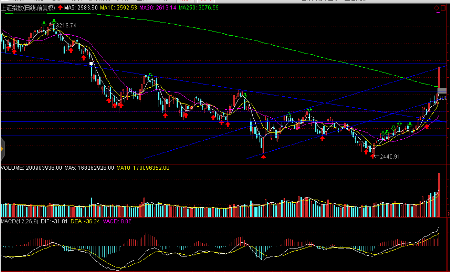 周一兩市大幅放量、強(qiáng)勢上揚(yáng),三大股指均以大陽報(bào)收。上證綜指收漲5.6%報(bào)2961.28點(diǎn),創(chuàng)2015年7月以來最大日漲幅、深證成指漲5.59%報(bào)9134.58點(diǎn)、創(chuàng)業(yè)板指漲5.5%報(bào)1536.37點(diǎn)、上證50漲6.28%。兩市巨量成交1.04萬億元,環(huán)比大幅增加4182億元,刷新2015年11月以來新高;北上資金結(jié)束連續(xù)18日凈流入,凈流出7億元;盤面看券商、保險(xiǎn)、銀行、5G通信、國產(chǎn)軟件、金融科技板及創(chuàng)投塊漲幅居前。整體看市場受到中美貿(mào)易磋商達(dá)成共識(shí)、金融供給側(cè)改革內(nèi)外利好因素影響,場外資金加速進(jìn)場,市場進(jìn)入階段性亢奮。