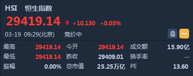 智通財(cái)經(jīng)APP獲悉,恒生指數(shù)開盤漲0.03%,報(bào)29417.14點(diǎn)。國企指數(shù)漲0.06%,報(bào)11681.76點(diǎn)。紅籌指數(shù)跌0.12%,報(bào)4675.12點(diǎn)。大市盤前成交15.9億港元。隔夜美股三大股指集體收高。今日清晨,香港金融管理局再度入市干預(yù),買入20.1億港元,以捍衛(wèi)聯(lián)系匯率機(jī)制,此乃金管局今年第3度出手。