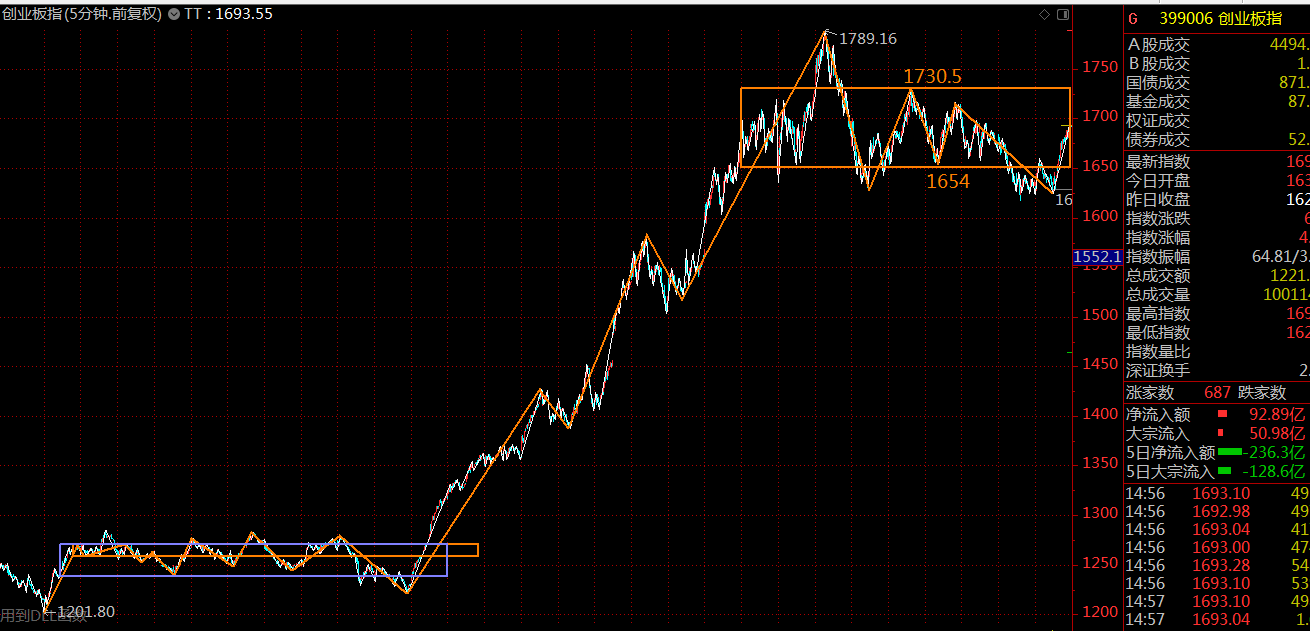 創(chuàng)業(yè)板方面,前面一段走的比較強(qiáng)勢,這里僅構(gòu)建了一個(gè)五分鐘級(jí)別的中樞,整體走勢上要強(qiáng)于主板,這里還是先看中樞級(jí)別擴(kuò)展,兩相結(jié)合,下周兩市大概率會(huì)以強(qiáng)勢震蕩、蓄勢突破為主。
