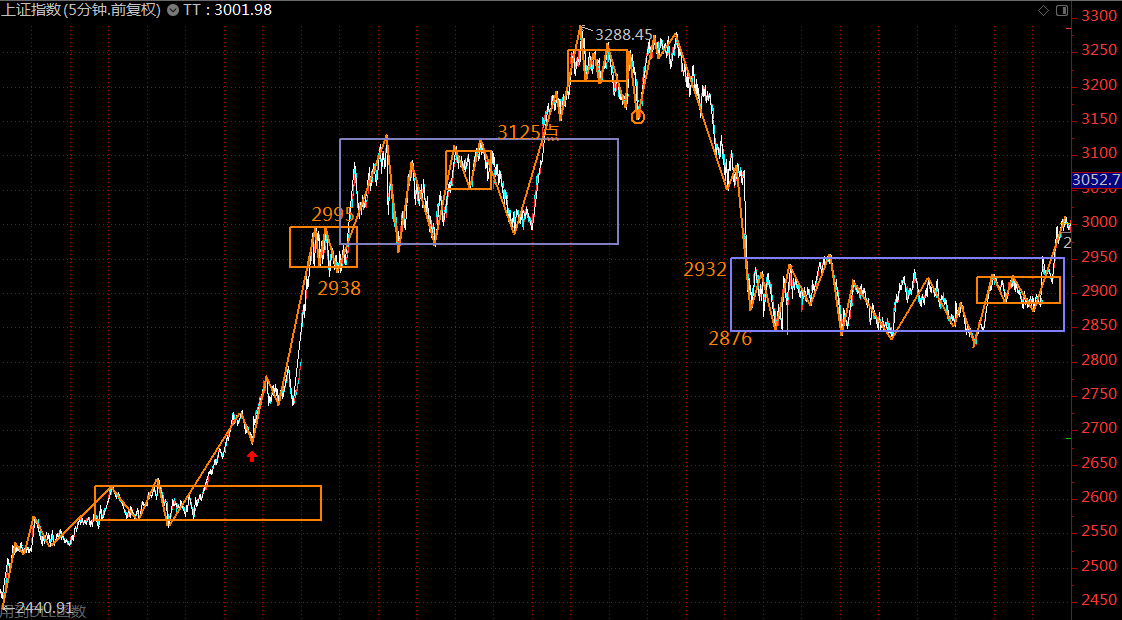 下圖為上證指數(shù)五分鐘級(jí)別走勢(shì)結(jié)構(gòu)。目前已正式突破5月6日開(kāi)始構(gòu)建的三十分鐘中樞,目前在5分鐘的上漲趨勢(shì)中,未有結(jié)束的征兆,投資者宜全力做多,直至出現(xiàn)五分鐘上漲趨勢(shì)背馳為止,按壓力位看,大約在3050點(diǎn)附近。風(fēng)險(xiǎn)控制線(xiàn)2932點(diǎn)。