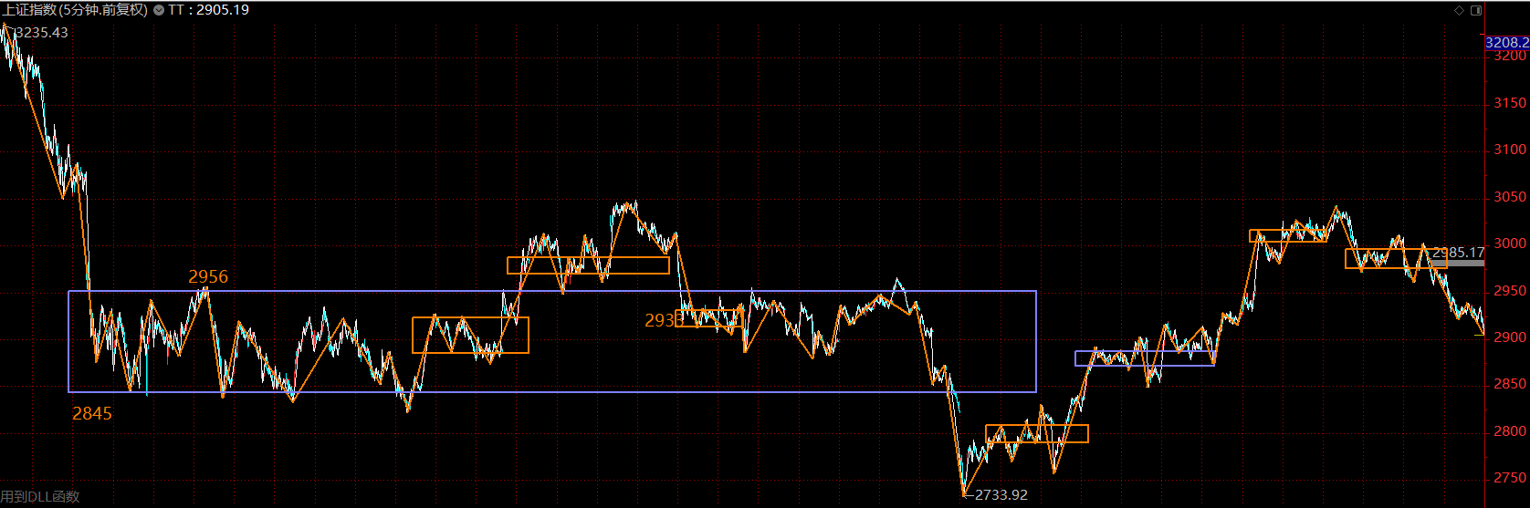 上證指數(shù)已跌回了大中樞內(nèi)部,目前最強(qiáng)支撐在中樞下軌2850附近。同時,從短線看,目前處于構(gòu)建五分鐘下跌趨勢第二個中樞的階段,即所謂的短線越跌越買的階段。投資者可稍微忽略指數(shù),著手分批布局三季報超預(yù)期個股,靜待反彈。