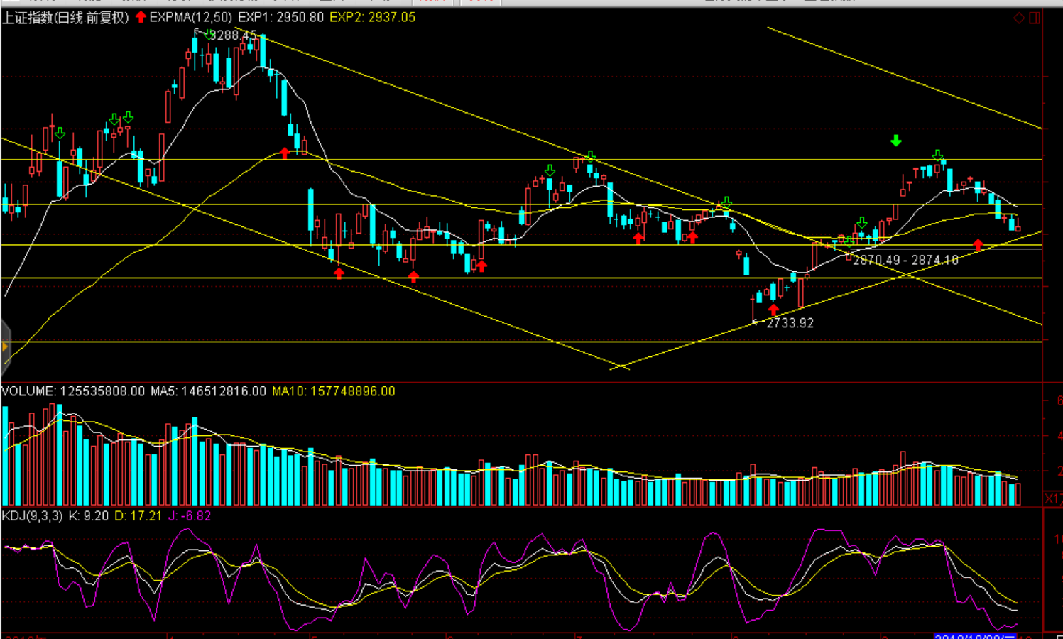 技術(shù)面:止跌企穩(wěn)、小幅放量、日線KDJ低位勾頭,短期止跌回升,小幅反彈;滬綜指2950點一線、創(chuàng)業(yè)板1653點一線壓力。