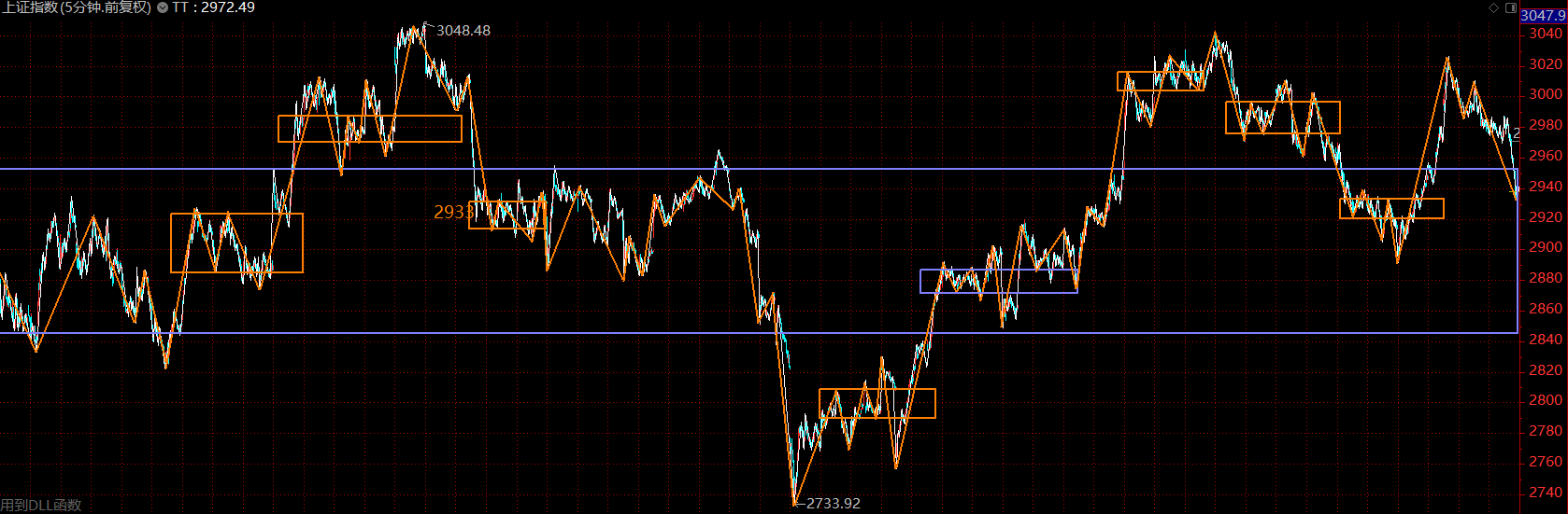 結(jié)構(gòu)上看,上證指數(shù)已跌回了大中樞內(nèi)部,市場情況不樂觀,大概率已經(jīng)確認上周一的高點為第二類賣點。那么這里應(yīng)該轉(zhuǎn)向防守為主,反彈中應(yīng)適度降低倉位,觀望等待。關(guān)注壓力位2970點附近,可據(jù)此高拋,靜待市場回落后再行布局。