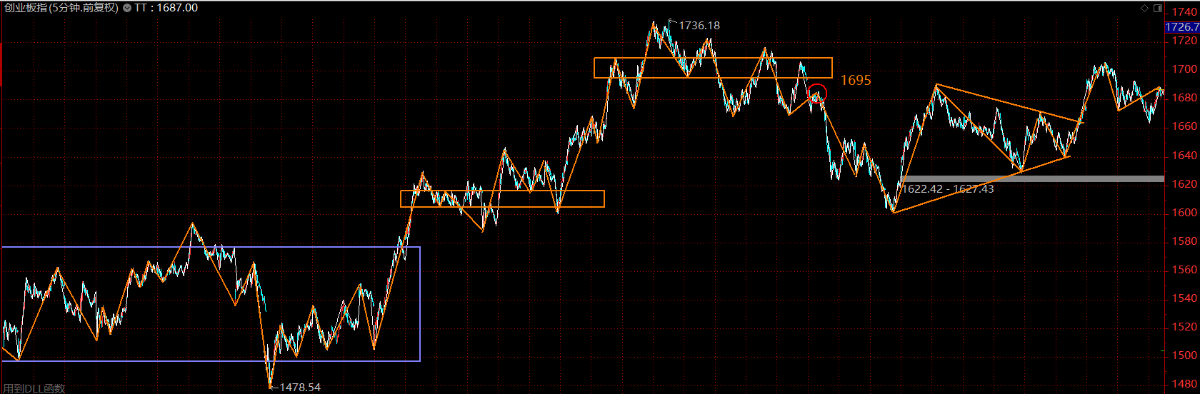 創(chuàng)業(yè)板形態(tài)上是一個(gè)三角形收斂突破的回踩,基本認(rèn)定這里短線整固結(jié)束,本周大概率會(huì)沖擊前高1736點(diǎn),盡量持股待漲。點(diǎn)位來看,短線1670點(diǎn)附近較為關(guān)鍵。