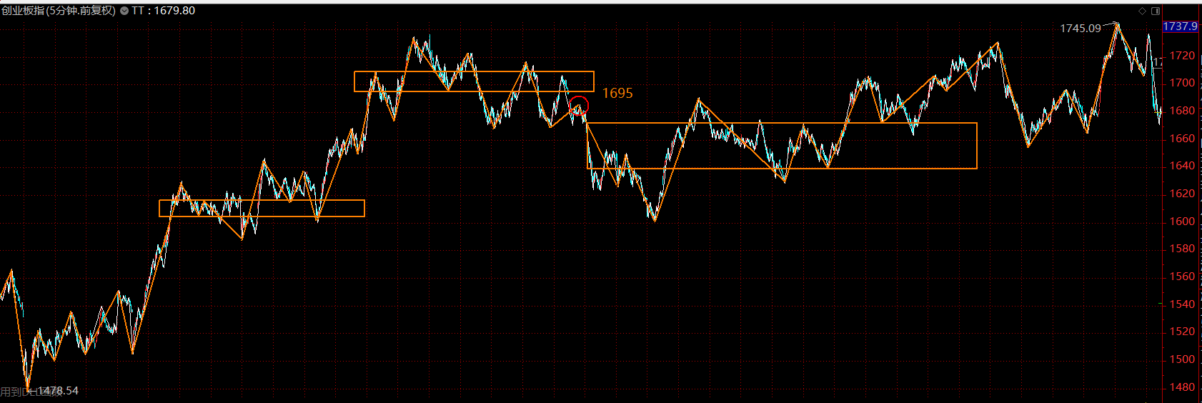 創(chuàng)業(yè)板這里則樂(lè)觀的多了,前高附近的中樞震蕩形態(tài),按歐奈爾的習(xí)慣來(lái)說(shuō),這個(gè)構(gòu)型叫“杯柄”,一種強(qiáng)勢(shì)形態(tài)??申P(guān)注1600-1640的支撐區(qū)域,適當(dāng)回補(bǔ)倉(cāng)位。從兩個(gè)市場(chǎng)的比較來(lái)看,依舊傾向于后續(xù)大行情集中在創(chuàng)業(yè)板,有點(diǎn)類似2013年,創(chuàng)業(yè)板多頭走勢(shì),主板還在探底。