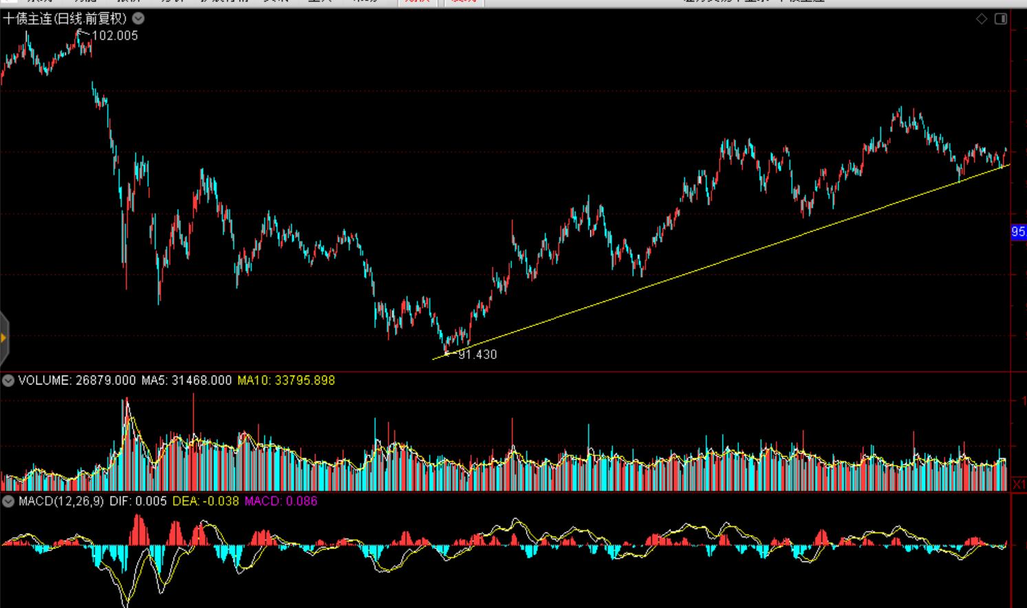 10年期國(guó)債期貨延續(xù)反彈態(tài)勢(shì):(與A股存在較為明顯的蹺蹺板效應(yīng))