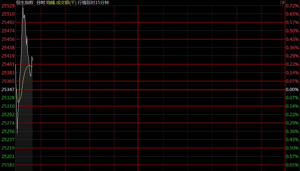 智通財(cái)經(jīng)APP獲悉,昨日恒指收跌800點(diǎn)。恒生指數(shù)開盤漲0.22%,報(bào)25401.17點(diǎn)。國(guó)企指數(shù)漲0.01%,報(bào)10235.9點(diǎn)。紅籌指數(shù)跌0.09%,報(bào)4107.59點(diǎn)。大市盤前成交16.67億港元。
