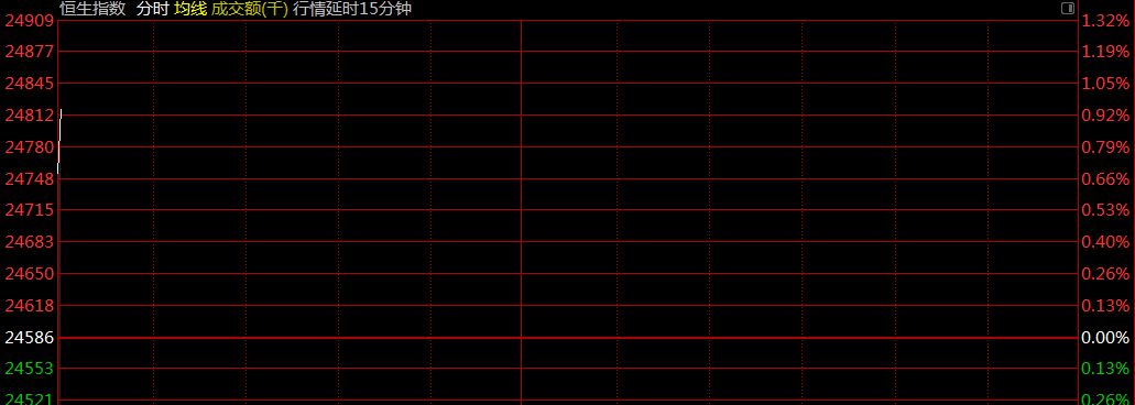 恒生指數(shù)開盤漲0.96%,報(bào)24955.79點(diǎn)。國(guó)企指數(shù)漲1.01%,報(bào)10159.89點(diǎn)。紅籌指數(shù)漲0.69%,報(bào)4083.05點(diǎn)。大市盤前成交18.45億港元。