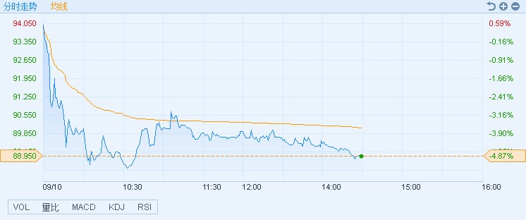 今日早盤(pán)A股鋼鐵板塊低開(kāi)低走,現(xiàn)鋼鐵板塊跌超3%,馬鋼股份(600808)跌逾6%,受此影響,港股馬鞍山鋼鐵股份(00323)也跟隨下跌,截至10時(shí)02分,跌8.25%,報(bào)價(jià)3.78港元,成交額9244萬(wàn)。