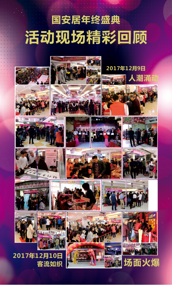 12月9、10日,全城矚目的“2017年國安居年終盛典收官之作暨俄羅斯美麗大使親善之旅”在國安居深惠六店隆重開啟。當(dāng)天國安居800品牌開倉低價(jià)促銷沖量,各店客流如織,場(chǎng)面火爆,早晨八點(diǎn)半,當(dāng)天活動(dòng)還未開始,為了能早點(diǎn)買單,搶到更多的禮包和獎(jiǎng)品,國安居各店門前早早就排起了長(zhǎng)隊(duì)。