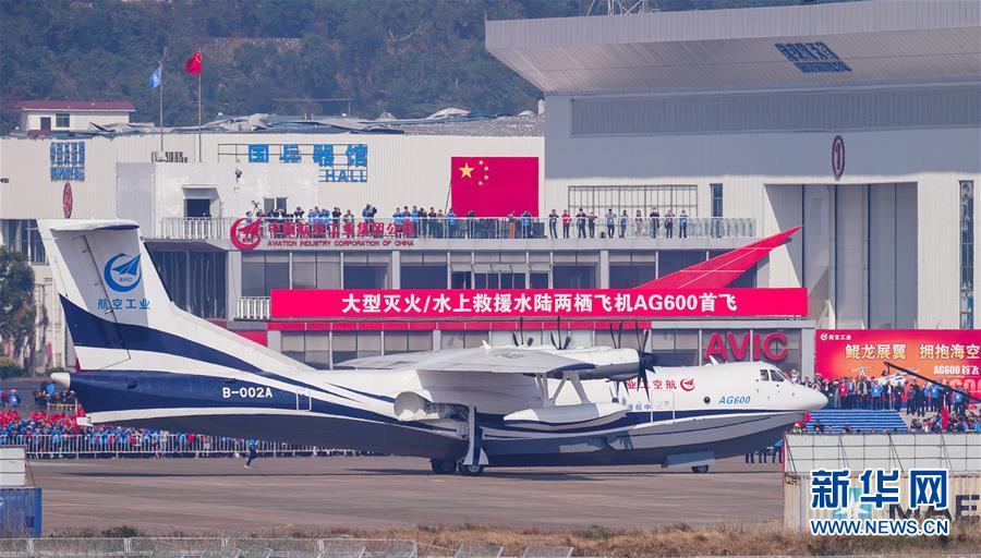 2000多年前莊子的暢想今天成為現(xiàn)實。12月24日上午9時39分許,藍白涂裝的大型水陸兩棲飛機——“鯤龍”AG600從珠海金灣機場啟動,滑行,一飛沖天。十年磨礪,運20、C919、AG600,中國大飛機“三兄弟”終于藍天聚首。東方航空大國正向航空強國全力沖刺。 新華社記者 劉大偉 攝