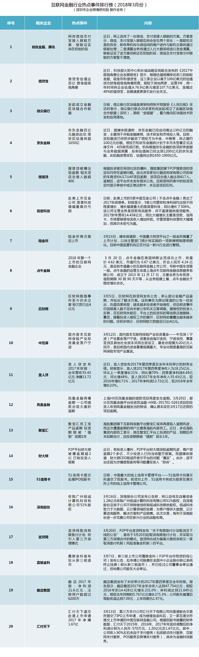 一、互聯(lián)網(wǎng)金融行業(yè)熱點(diǎn)事件排行榜
