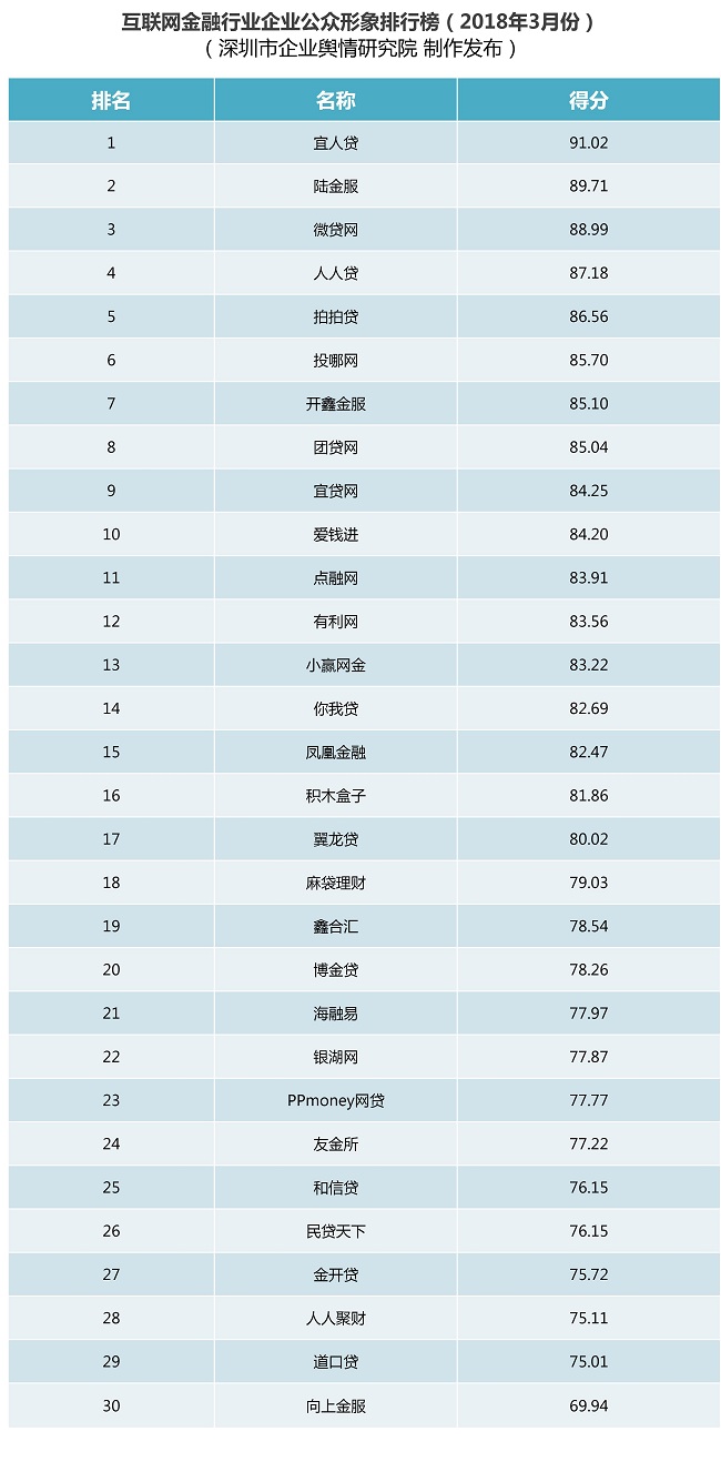 互聯(lián)網(wǎng)金融行業(yè)企業(yè)公眾形象排行榜:本榜單根據(jù)公開(kāi)可查的信息、數(shù)據(jù),從規(guī)模實(shí)力、合規(guī)性、交易金額、信披透明度、輿論曝光度和負(fù)面影響等六個(gè)維度,對(duì)2018年3月1日至3月31日這一時(shí)段內(nèi)互聯(lián)網(wǎng)金融行業(yè)各企業(yè)的公眾形象進(jìn)行綜合評(píng)估并排名,旨在對(duì)互聯(lián)網(wǎng)金融行業(yè)各企業(yè)開(kāi)展品牌形象塑造、宣傳推廣策略、公共關(guān)系維護(hù)、品牌影響力等方面的綜合評(píng)價(jià),既幫助相關(guān)企業(yè)找準(zhǔn)合適的品牌定位、發(fā)展方向,也為消費(fèi)者和投資者提供科學(xué)、公正、獨(dú)立的消費(fèi)和投資決策參考。