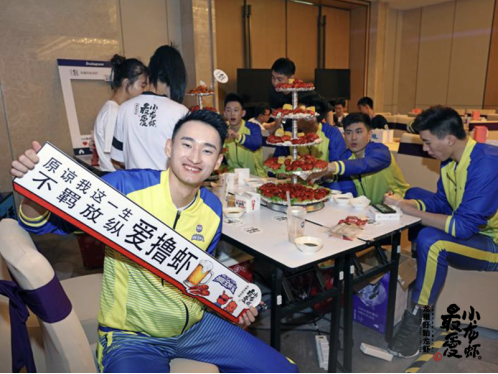 參加球迷見(jiàn)面會(huì)的排球運(yùn)動(dòng)員們?cè)谝?jiàn)到香酥可口的小龍蝦后,都忍不住立馬品嘗,對(duì)龍蝦的味道是贊不絕口,并主動(dòng)和小龍蝦共同合影留戀。