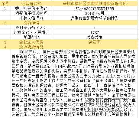 2018年1月,福田區(qū)消委會收到消費者投訴深圳市福田區(qū)美度美膚健康管理會所,稱經(jīng)營者亂扣費,要求退回余額(會員卡余額1737元)。接到投訴后調(diào)解人員多次致電商家,商家楊姓負責(zé)人回電解釋:系統(tǒng)顯示消費者的會員卡在1月4日只有一筆消費448元,卡內(nèi)余額1737元;消費者反映的收到扣款短信是店員短信發(fā)送的操作失誤,實際并未扣款,不存在故意欺詐行為。隨后商家電話一直無人接聽,福田區(qū)消委會于3月15日、3月19日、3月23日三次分別派出多名工作人員到商家經(jīng)營地址(福田區(qū)濱河大道京基御景華城)進行現(xiàn)場調(diào)查,現(xiàn)場大門緊閉,玻璃門上一直貼著“內(nèi)部培訓(xùn),暫停營業(yè)”的告示,福田區(qū)消委會工作人員向大廈物業(yè)管理處了解情況,得知商家已關(guān)門停業(yè)數(shù)日,該商家疑似“跑路”。鑒于該商家在福田區(qū)消委會調(diào)查期間無故關(guān)門停業(yè)并失聯(lián),致使消費者權(quán)益受到嚴重侵害,且福田區(qū)消委會多次遞送《約談通知書》到商家經(jīng)營地,均無人接收。依據(jù)《深圳市消費者委員會消費維權(quán)信用信息管理辦法(試行)》第九條,我會將該企業(yè)信息推送至深圳市公共信用中心等征信機構(gòu)。