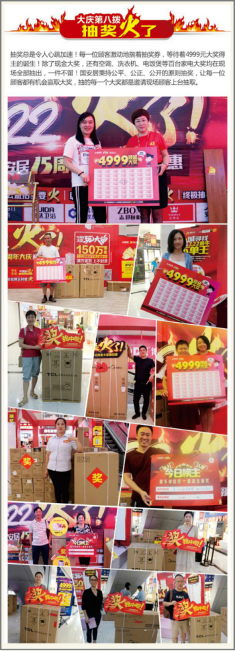 深圳新聞網(wǎng)訊 上周日,備受業(yè)內(nèi)矚目的國(guó)安居15周年大慶已圓滿落下帷幕。作為國(guó)安居年度最為重要的大慶盛典,這場(chǎng)活動(dòng)共持續(xù)了23天,為消費(fèi)者帶來(lái)一場(chǎng)打折、贈(zèng)禮、返現(xiàn)、抽獎(jiǎng)等多種方式組合的鉅惠盛宴,吸引了來(lái)自深惠兩城各區(qū)域及周邊城市的大批消費(fèi)者前往參觀采購(gòu)。今天,國(guó)安居六家分店人流量激增、營(yíng)業(yè)額節(jié)節(jié)攀升,總實(shí)收款近4600萬(wàn)元,總收單5119單!讓消費(fèi)者真正地感受到了國(guó)安居15周年大慶活動(dòng)的力量。活動(dòng)落下帷幕,國(guó)安居賺足了人氣、贏得了掌聲,而消費(fèi)者也是買得實(shí)惠、滿載而歸。下面跟著小編一起來(lái)回顧一下這場(chǎng)巔峰盛惠的精彩場(chǎng)面吧。