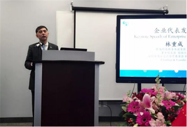▲深圳中小企聯(lián)會長、基金會榮譽(yù)副會長、銀盛集團(tuán)董事局主席林重成演講