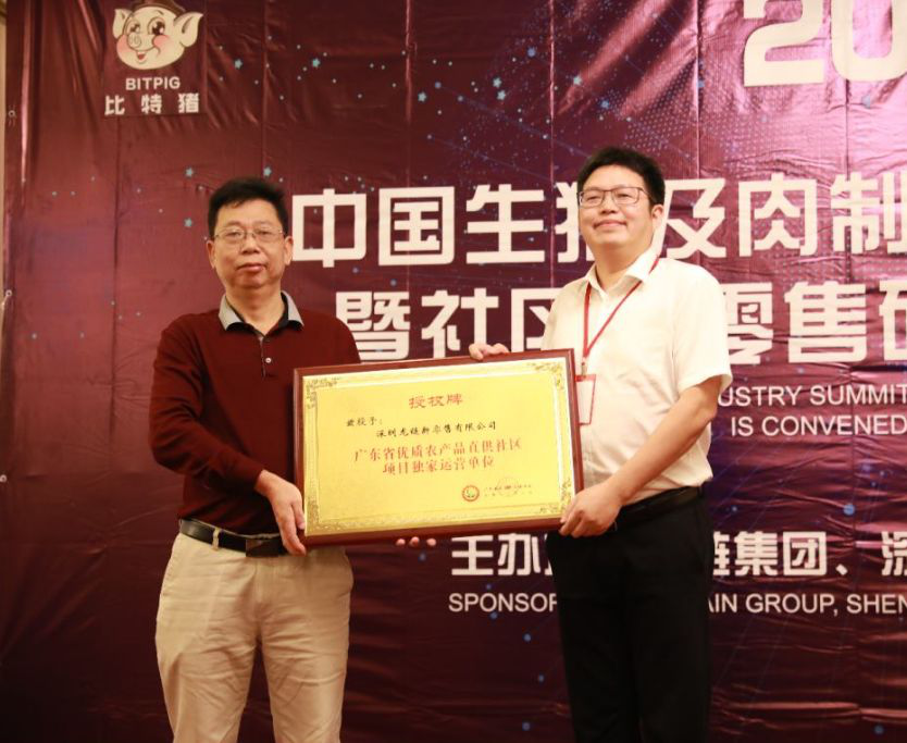龍鏈集團(tuán)董事局主席、川豬集團(tuán)董事長、深圳龍鏈新零售有限公司董事長夏可,上臺接受了這項(xiàng)全廣東省獨(dú)家的授權(quán)牌,并發(fā)表感言:這既是廣東省委、省政府對深圳龍鏈新零售有限公司以區(qū)塊鏈、人工智能、物聯(lián)網(wǎng)等領(lǐng)域的高新科技,打造形成了生豬及肉制品等高品質(zhì)“菜籃子工程”系列產(chǎn)品的規(guī)?;?、專業(yè)化產(chǎn)供銷及商業(yè)平臺服務(wù)“一條龍”的肯定,也是一種鞭策——鞭策龍鏈人將自創(chuàng)的“比特豬”品牌穩(wěn)固為中國高端健康食品結(jié)合社區(qū)新零售領(lǐng)域的第一品牌,并不斷推動(dòng)市民能夠以更便捷的方式與更良好的消費(fèi)體驗(yàn),獲得高品質(zhì)的放心食品。