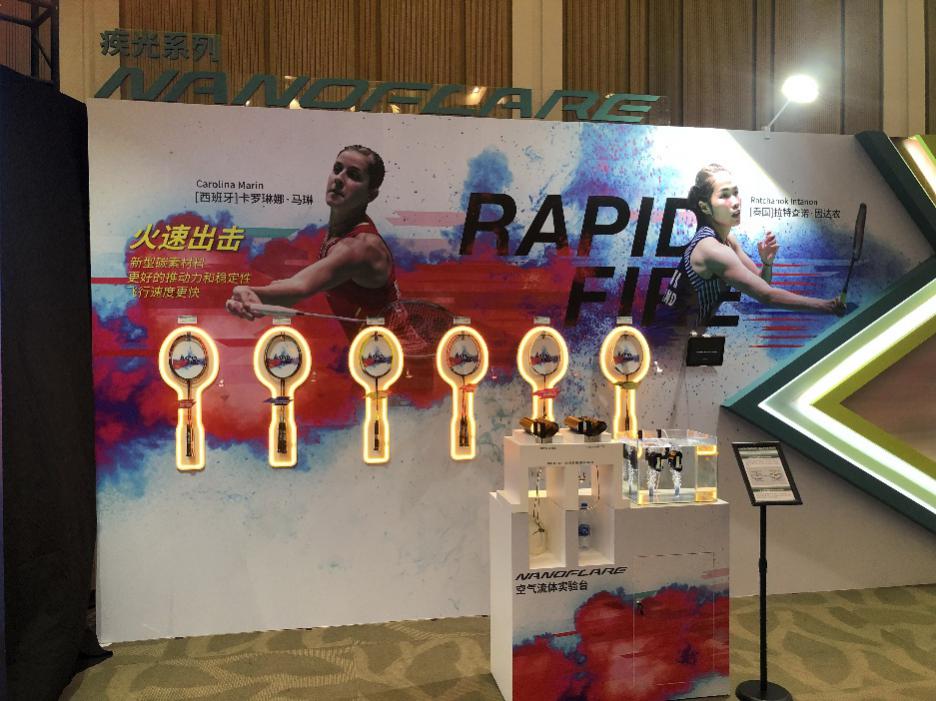 活動(dòng)現(xiàn)場(chǎng),YONEX公開(kāi)了2019年的開(kāi)山之作NANOFLARE疾光系列,以及系列的首發(fā)產(chǎn)品NANOFLARE疾光700。新的產(chǎn)品以全新的科技打造而成,為追求速度更快,輕盈而彈力表現(xiàn)出色的全新球拍。球拍格外推出5U版本,也是市場(chǎng)上罕見(jiàn)的輕頭球拍中5U的規(guī)格。系列以疾光命名,意為疾如電光。為能在比賽上火速出擊,以快速的擊球占得先機(jī)而量身定做。