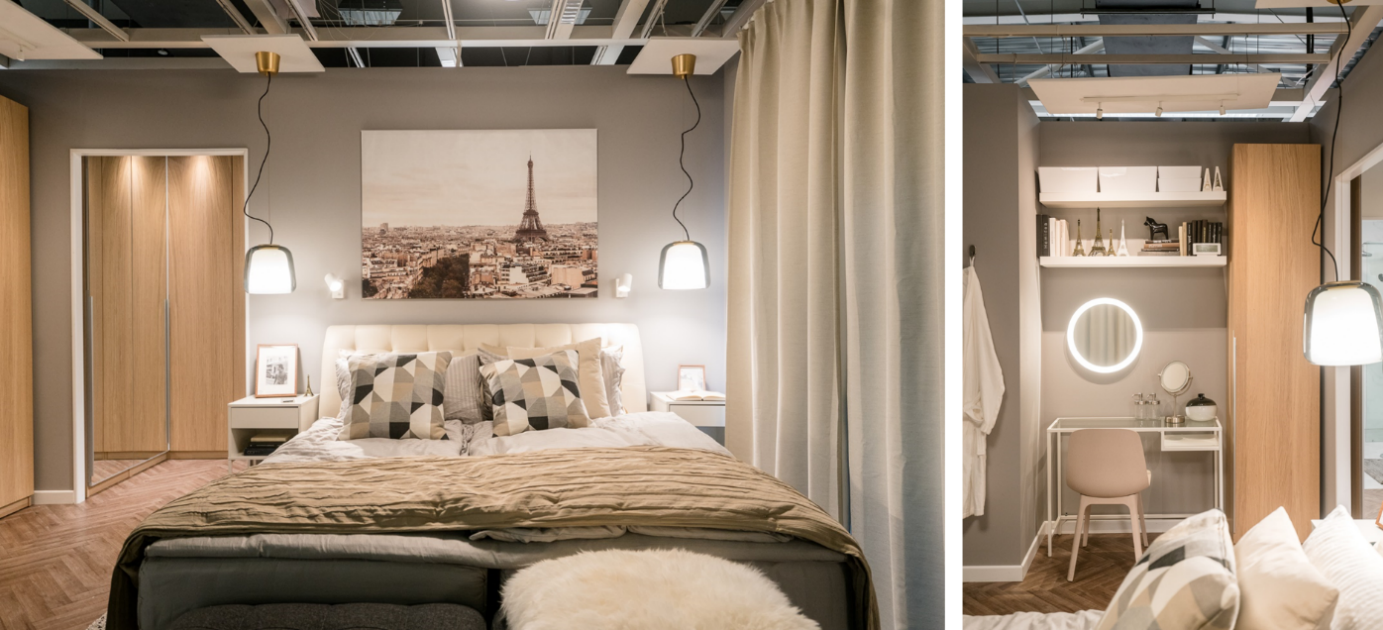 為了做好這次全新臥室設(shè)計(jì),給顧客帶來更多的家居靈感,深圳商場(chǎng)的室內(nèi)設(shè)計(jì)師們通過走進(jìn)消費(fèi)者家中進(jìn)行家訪、研讀相關(guān)報(bào)告、切合實(shí)際生活場(chǎng)景,根據(jù)中國(guó)人的臥室需求和睡眠情況,精心打造了全新12間臥室展間。