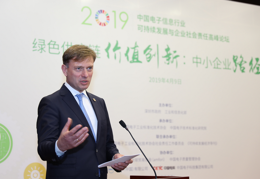 深圳新聞網(wǎng)4月10日訊 4月9日,“中國電子信息行業(yè)2019可持續(xù)發(fā)展與企業(yè)社會(huì)責(zé)任高峰論壇”在深圳會(huì)展中心成功舉行。本次會(huì)議由深圳市政府、工業(yè)和信息化部主辦,中國電子工業(yè)標(biāo)準(zhǔn)化技術(shù)協(xié)會(huì)、中國電子技術(shù)標(biāo)準(zhǔn)化研究院承辦,中國電子工業(yè)標(biāo)準(zhǔn)化技術(shù)協(xié)會(huì)社會(huì)責(zé)任工作委員會(huì)、《可持續(xù)發(fā)展經(jīng)濟(jì)導(dǎo)刊》(原《WTO經(jīng)濟(jì)導(dǎo)刊》)聯(lián)合承辦,全球貿(mào)易協(xié)會(huì)(amfori)、中國電子質(zhì)量管理協(xié)會(huì)、戴爾(中國)有限公司、中國電子科技集團(tuán)有限公司協(xié)辦,論壇還得到了深圳市創(chuàng)新企業(yè)社會(huì)責(zé)任促進(jìn)中心和責(zé)揚(yáng)天下(北京)管理顧問有限公司的大力支持。