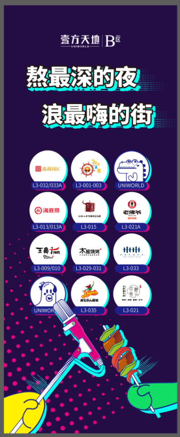 購物中心是城市的精華,也是生活方式的容器。B區(qū)洞察了當(dāng)代年輕人的這一消費習(xí)慣,發(fā)力“夜經(jīng)濟”,精心打造夜市街區(qū)——嗨FUN宵夜街。