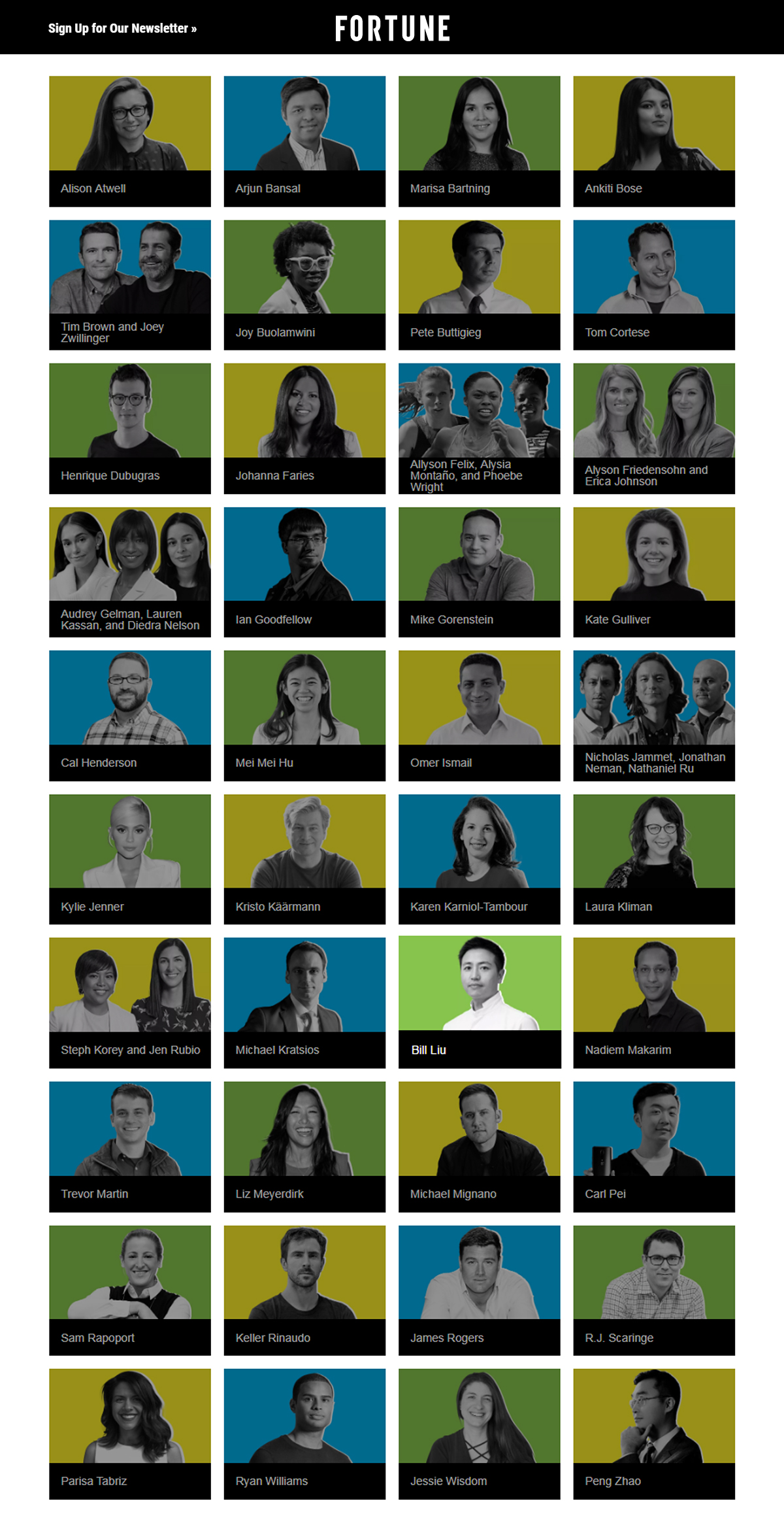 《財(cái)富》雜志“全球40位40歲以下商界精英”排行榜是《財(cái)富》評選的年度最具影響力年輕領(lǐng)袖榜單,旨在挖掘全球范圍內(nèi)年輕的杰出創(chuàng)新者、價(jià)值締造者和變革者。Facebook創(chuàng)始人兼CEO馬克·扎克伯格(Mark Zuckerberg)、騰訊創(chuàng)始人兼CEO馬化騰、美團(tuán)點(diǎn)評聯(lián)合創(chuàng)始人兼CEO王興、字節(jié)跳動創(chuàng)始人兼CEO張一鳴、Airbnb聯(lián)合創(chuàng)始人兼CEO布萊恩·切斯基(Brian Chesky)等一眾知名政商精英,都曾入選該榜單。