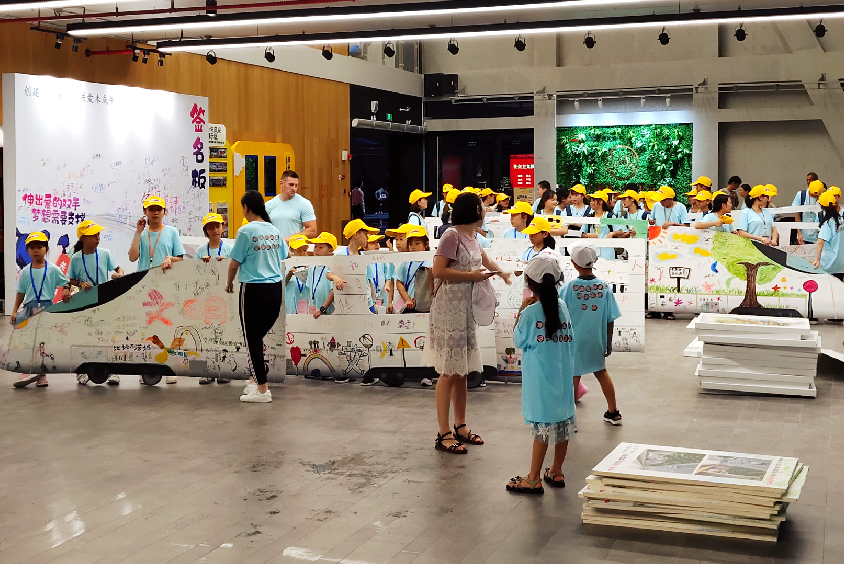 深圳新聞網(wǎng)2019年8月2日訊 兩列長達(dá)24米,車身由深圳百名兒童彩繪設(shè)計(jì)的小火車,帶著他們的夢想,1日下午在深圳龍崗紅立方青少年館“開出”,開啟暑期文明生活之旅。