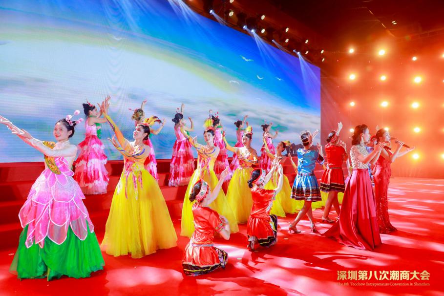 晚會上,一臺富有潮汕味的潮州大鑼鼓開場,緊接著少兒英歌舞,潮語歌曲聯(lián)唱、天津快板、童謠表演、建國七十周年經(jīng)典歌曲聯(lián)唱等節(jié)目輪番上演,為現(xiàn)場賓客獻(xiàn)上了一場獨(dú)具特色的視聽盛宴。大會在大合唱《歌唱祖國》的豪邁歌聲中落下帷幕,大家共祝潮商事業(yè)蓬勃發(fā)展,再創(chuàng)新輝煌!(張俊達(dá))