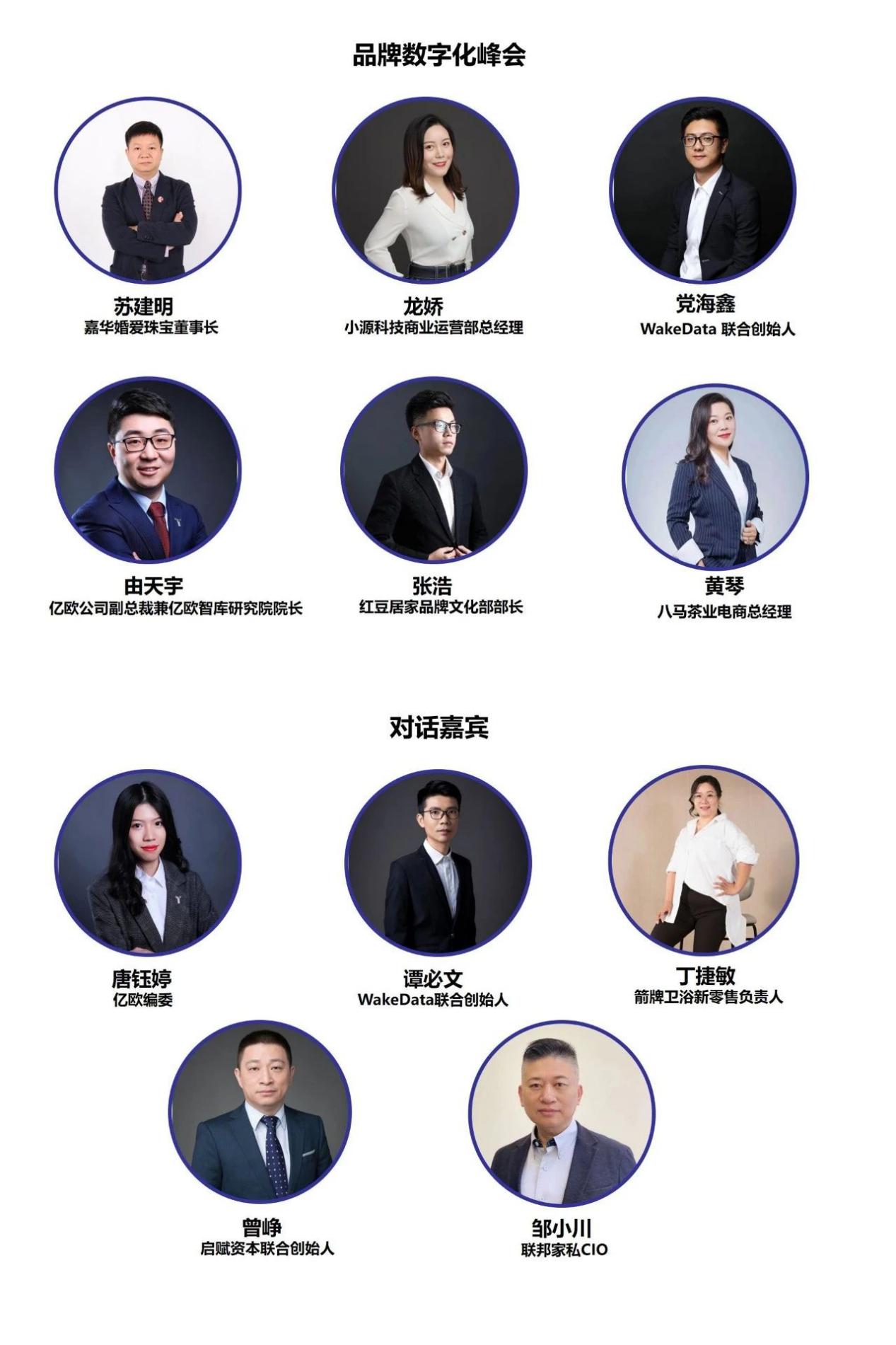10月30日14:00—17:00(宴會廳Ⅱ)舉行品牌數字化峰會,由嘉華婚愛珠寶董事長蘇建明主持。小源科技商業(yè)運營部總經理龍嬌演講主題《企業(yè)AI場景化服務之道》 WakeData聯合創(chuàng)始人黨海鑫演講主題《喚醒數據讓企業(yè)更懂自己的用戶》,億歐公司副總裁兼億歐智庫研究院院長由天宇演講主題《品牌的技術創(chuàng)新與潮流變革》,紅豆居家品牌文化部部長張浩演講主題《基于用戶的品牌數字化升級》,八馬茶業(yè)電商總經理黃琴演講主題待定。圓桌對話由億歐編委唐鈺婷主持,對話嘉賓包括WakeData聯合創(chuàng)始人譚必文,啟賦資本聯合創(chuàng)始人曾 崢,箭牌衛(wèi)浴新零售負責人丁捷敏,聯邦家私CIO鄒小川。