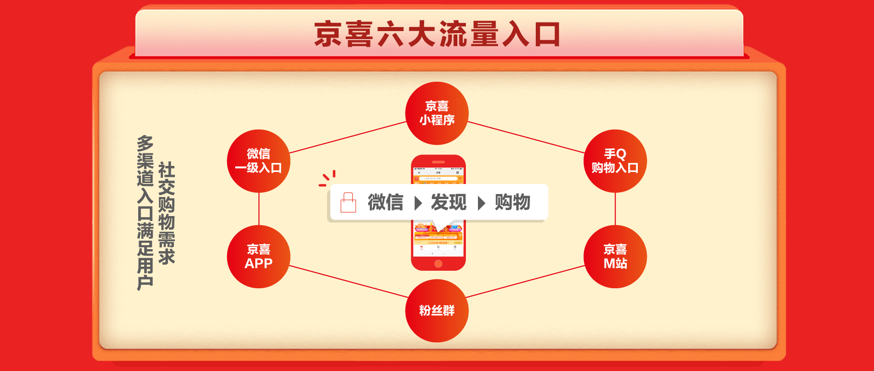 深圳新聞網(wǎng)2019年11月1日訊 10月31日,京東旗下社交電商平臺(tái)京喜正式接入微信一級(jí)入口,消費(fèi)者只需點(diǎn)擊“微信-發(fā)現(xiàn)-購(gòu)物”即可訪問京喜。這也宣告著京喜在微信一級(jí)入口、手機(jī)Q Q、京喜小程序、京喜APP、京喜M站、粉絲群6大移動(dòng)端渠道完成全域戰(zhàn)略布局。