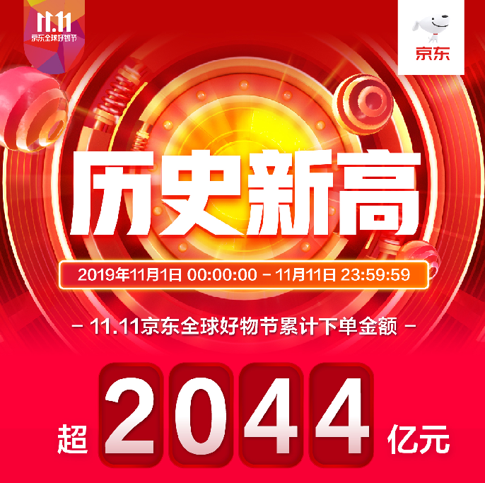 深圳新聞網(wǎng)2019年11月12日訊 從11月1日零時起至11月11日23時59分59秒,“11.11京東全球好物節(jié)”累計下單金額超過2044億元,較2018年11.11實現(xiàn)大幅超越。這也是繼今年年中“618十六周年慶”累計下單金額創(chuàng)下2015億元之后,京東在年末11.11打造的又一實力新主場。